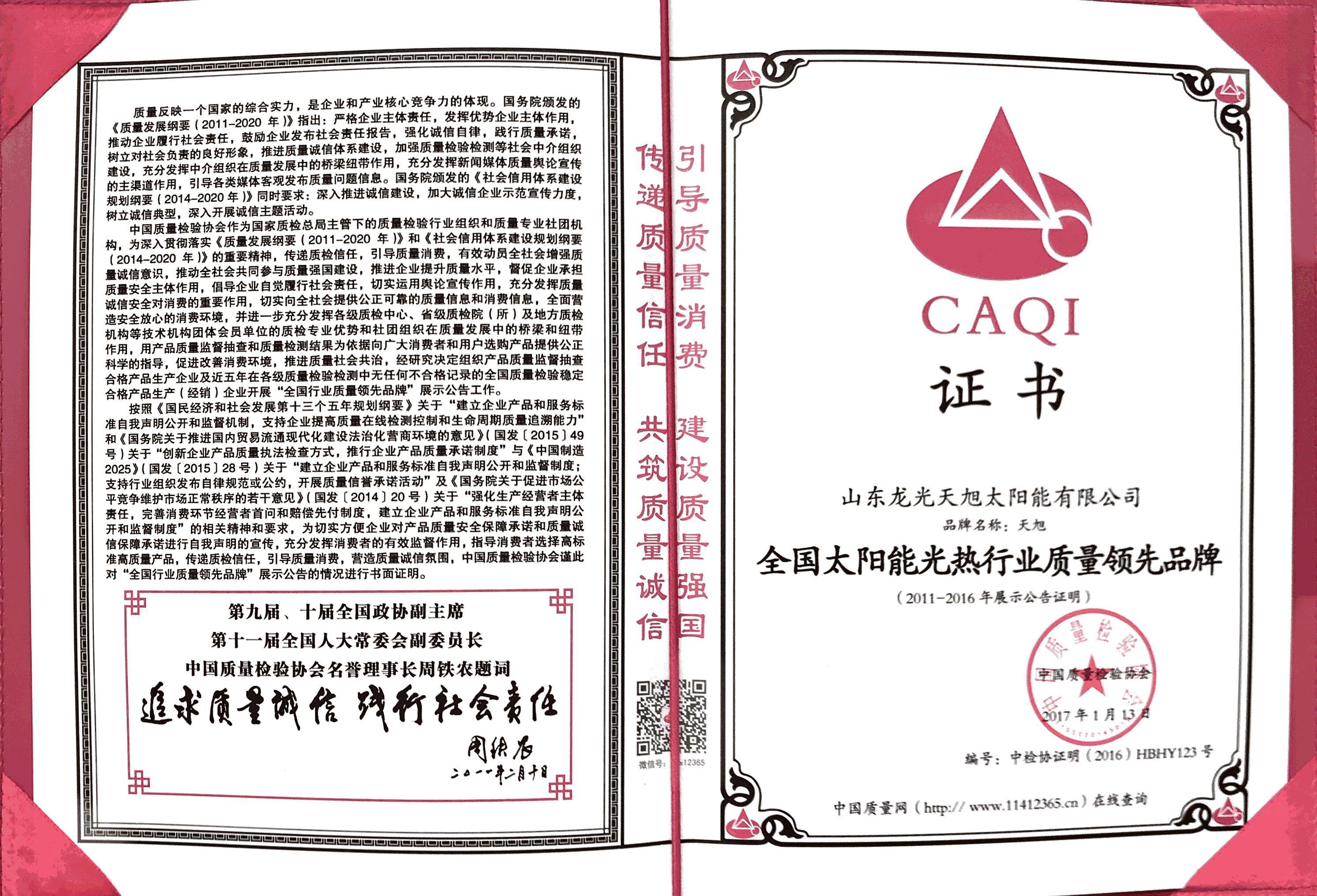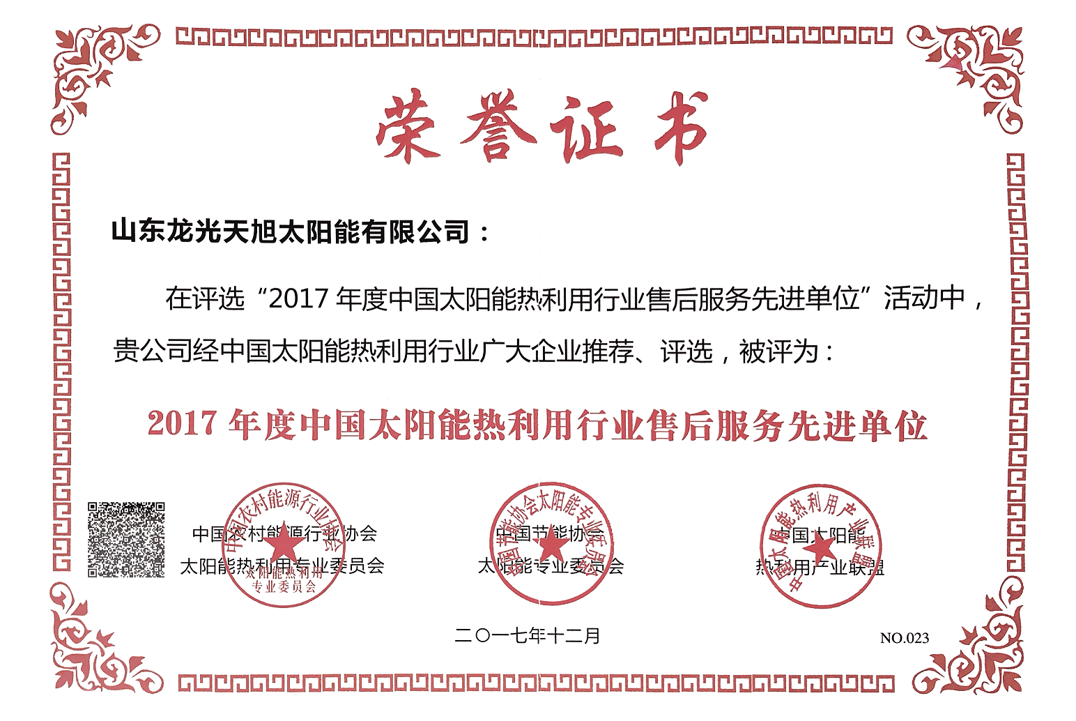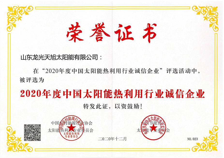 • 2020 Integrity Enterprise in China's Solar Thermal Utilization Industry
